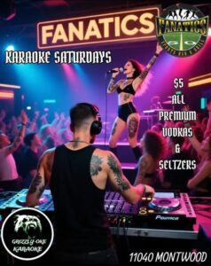 Fanatics Sports Bar & Grill is your go-to spot for Saturday night karaoke! Join us every week as DJ Grizzly-Oke keeps the energy high and the fun flowing.