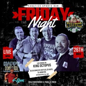 #FanaticsEP #KingOctopus #LiveMusic #ElPaso #HappyHour #FridayNight #SportsBar