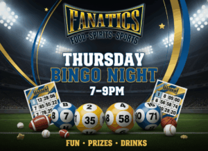 Ready for a wild Thursday? Bingo Night at Fanatics is where the action’s at! Join us from 7–9pm for a chance to win awesome prizes, sip on cold drinks, and soak up the electric sports bar energy. Bring your friends, bring your game face, and get loud—this isn’t your grandma’s bingo!
